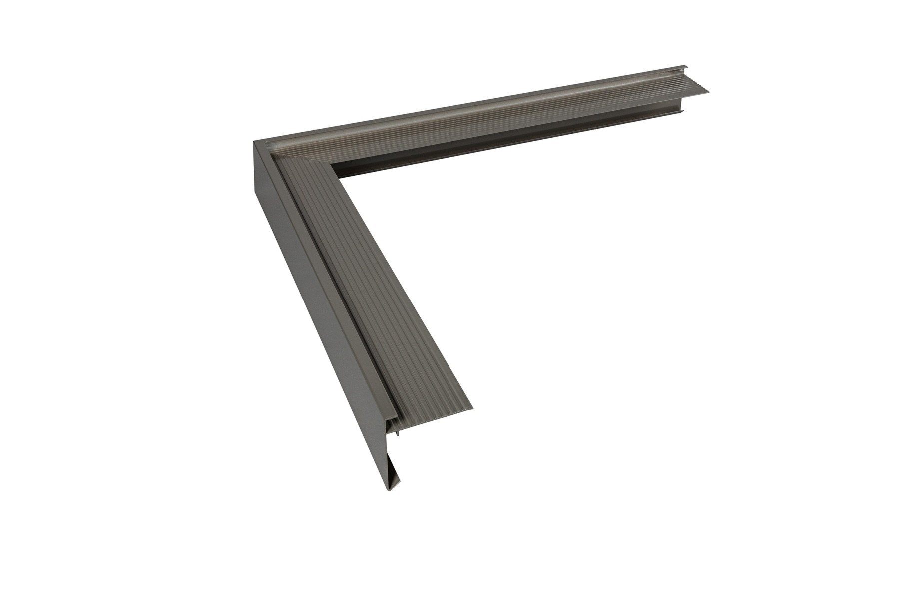 Aluminum roof edge profile (roof trim) suitable for residential and commercial construction. Available in raw, enamelled and anodized versions. In lengths of 2500 mm. A number of RAL colors are available from stock in the dimensions 60x64 mm, 80x64 mm and 45x45 mm. In addition, a clear anodized version is available as standard in stock for the 60x45mm.